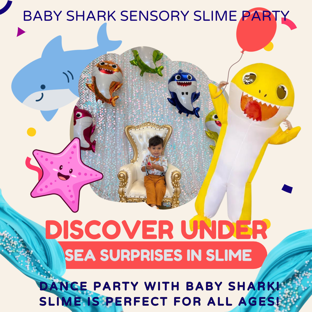 - After one hour of slime fun we will have a baby shark dance party/ photoshoot and/or fashion show on our catwalk