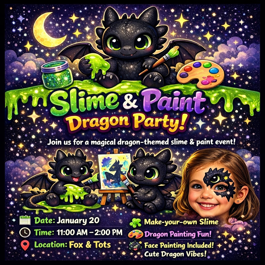 TODDLER TUESDAY DRAGON SLIME & PAINT 1/20 11am-2pm